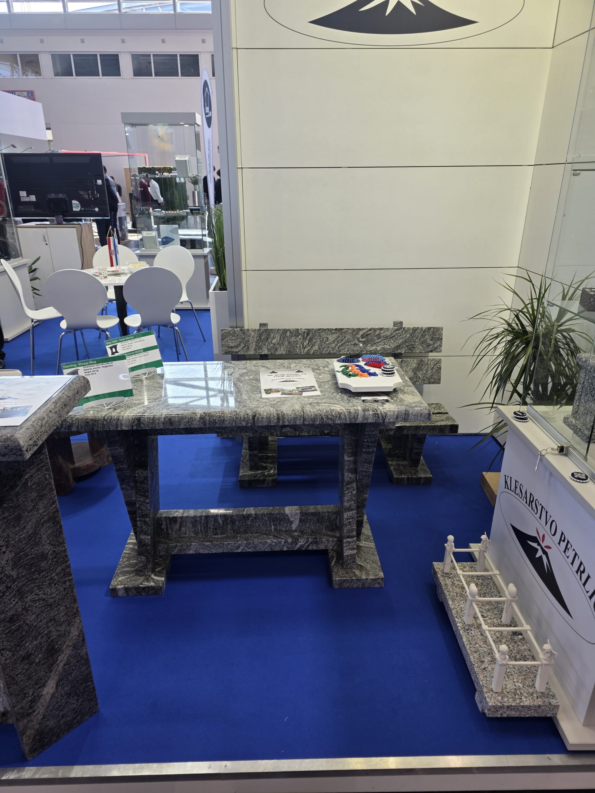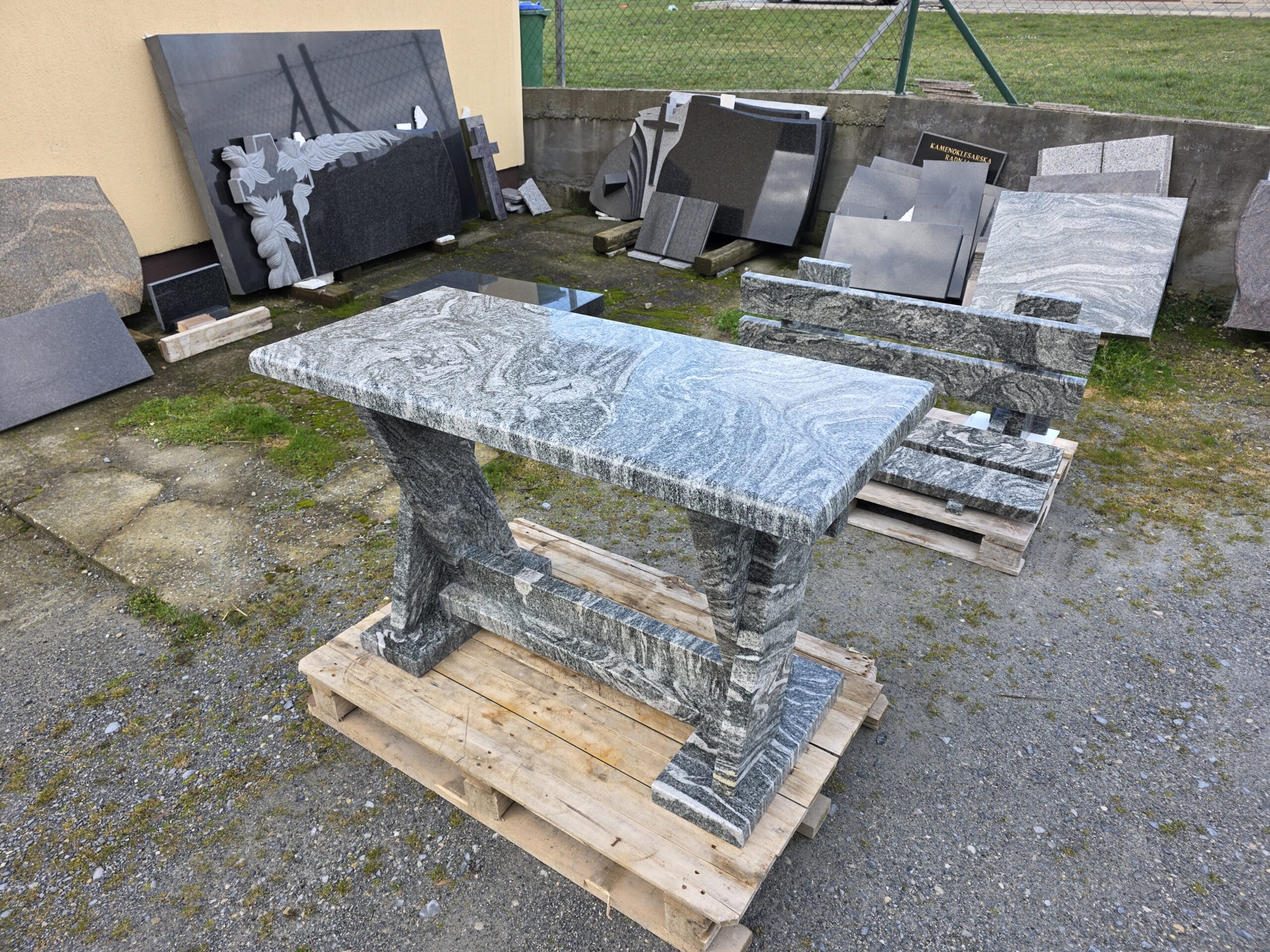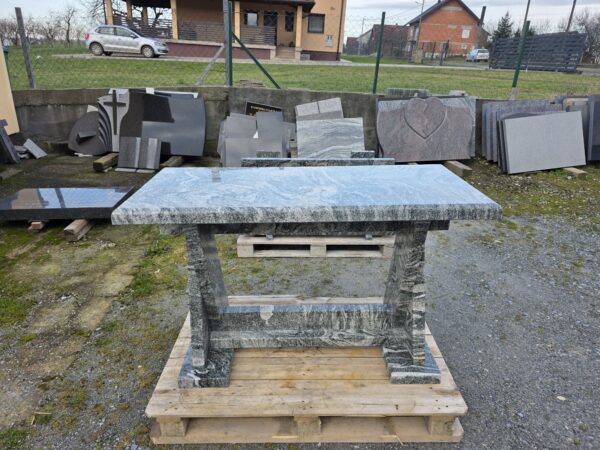 Stol i klupa od granita debljine 5 cm je elegantan, stabilan i neuništiv komad namještaja za Vašu terasu, vrt ili balkon, otporan na sve vremenske uvijete.