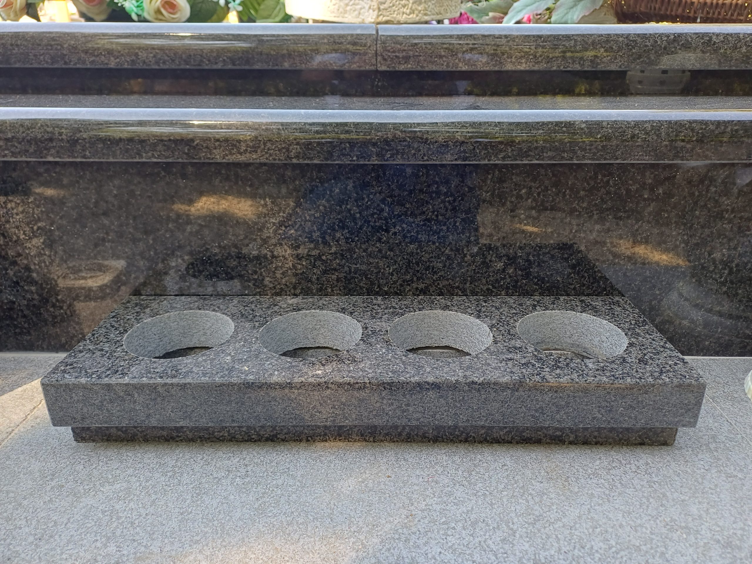 Zahvaljujući težini i otpornosti granita, stalak je pogodan za dugotrajnu vanjsku upotrebu, bez obzira na vremenske uvjete. Jednostavan i funkcionalan dizajn uklapa se uz nadgrobne spomenike i druge kamene površine, bez vizualnog narušavanja prostora.