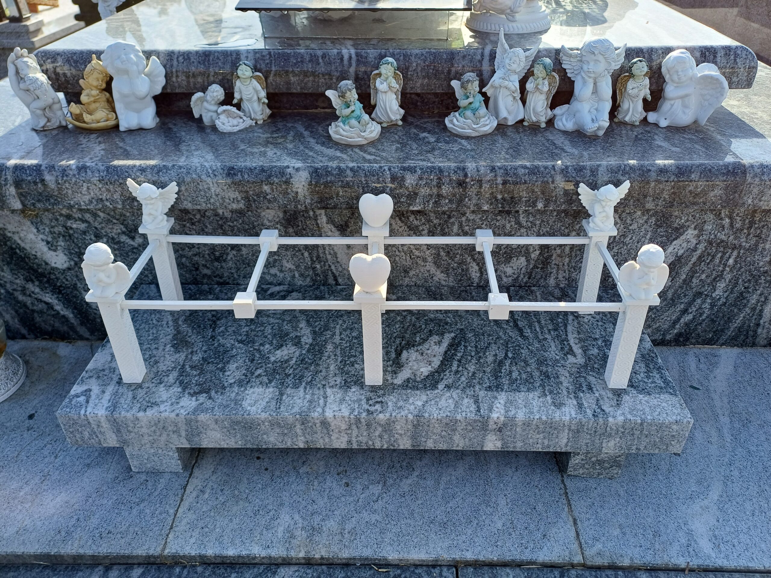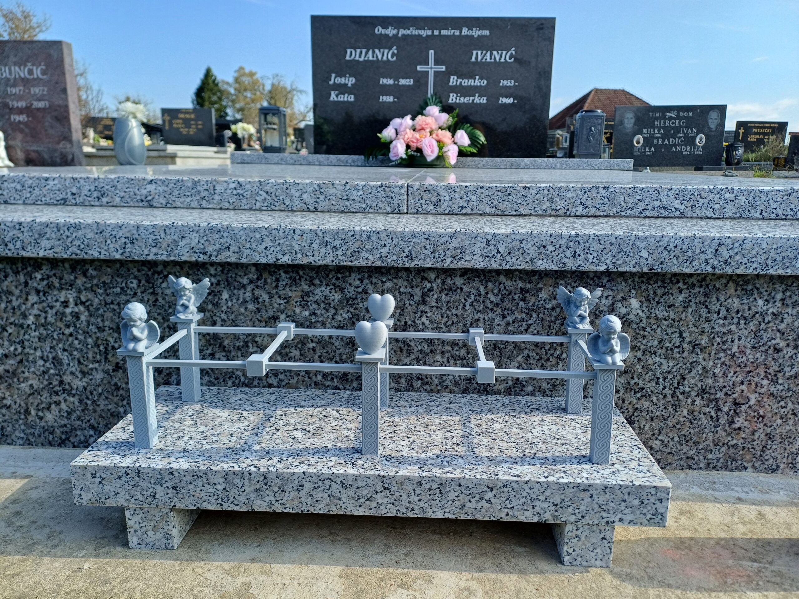 Ogradica pridonosi urednijem izgledu prostora za paljenje svijeća te smanjuje mogućnost razlijevanja voska. Zahvaljujući jednostavnom i diskretnom dizajnu, stalak se prirodno uklapa uz nadgrobne spomenike i ostale kamene površine.