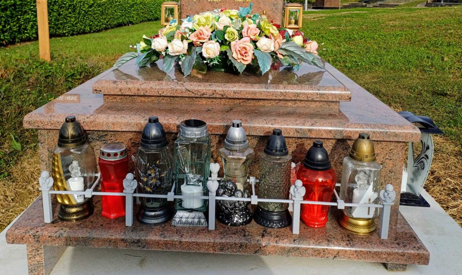 Stabilan stalak za lampaše s bazom od prirodnog granita i zaštitnom ogradicom. Namijenjen sigurnom i urednom postavljanju lampaša na grobnim mjestima, spomenicima ili drugim vanjskim površinama.